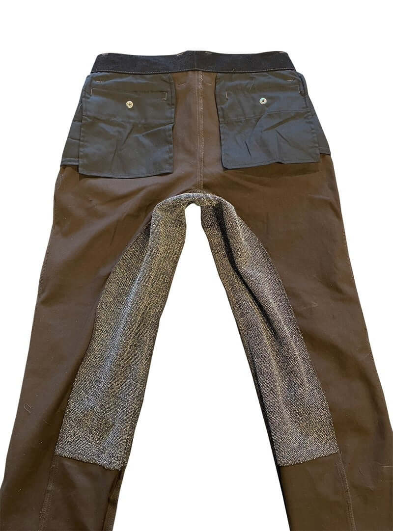 前身頃が牛革(ウォッシャブル)で後身頃がストレッチコットンのハイブリットなライディングパンツ