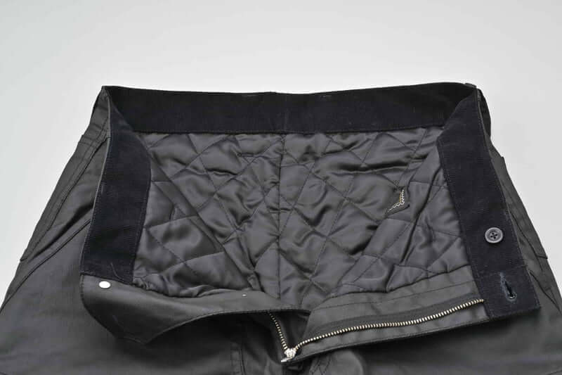 フロント前立ても一般的なパンツと比較して2倍の幅としファスナー部からの風の侵入を軽減しています