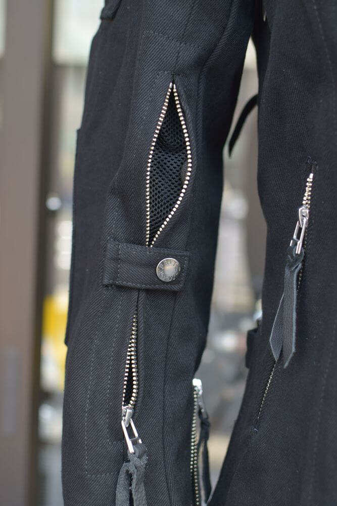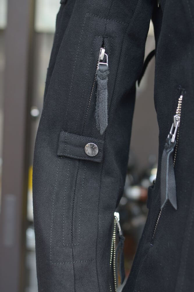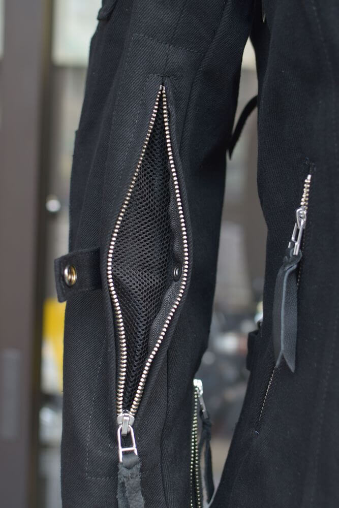 フロントジップが2列のダブルジップ仕様ですのでインナーの厚みによって身幅の調節が可能となっております